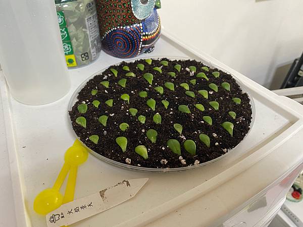奶油白熊開花.火焰景天葉插.綠熊童子分株.桃之卵.玉露合拍.皮賓卷絹分株